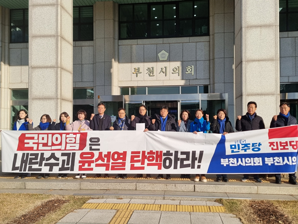 °æ±â ºÎõ½ÃÀÇȸ ´õºÒ¾î¹ÎÁÖ´ç﹡Áøº¸´ç ºÎõ½ÃÀÇ¿ø Àϵ¿ÀÌ 11ÀÏ ½ÃÀÇȸ ¾Õ¿¡¼ ¡®±¹¹ÎÀÇÈû, À±¼®¿ źÇÙ µ¿Âü¡¯ Ã˱¸ °áÀǹ®À» ¹ßÇ¥Çß´Ù.