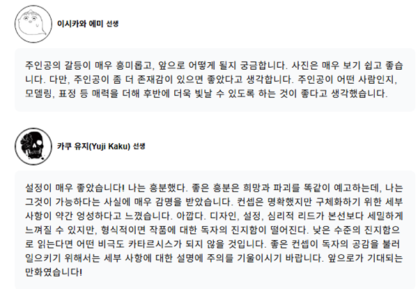 ÁÖÀΰøÀÇ °¥µîÀÌ ¸Å¿ì Èï¹Ì·Ó°í,¾ÕÀ¸·Î ¾î¶»°Ô µÉÁö ±Ã±ÝÇÕ´Ï´Ù.»çÁøÀº ¸Å¿ì º¸±â ½±°í ÁÁ½À´Ï´Ù.´Ù¸¸,ÁÖÀΰøÀÌ Á» ´õ Á¸Àç°¨ÀÌ ÀÖÀ¸¸é ÁÁ¾Ò´Ù°í »ý°¢ÇÕ´Ï´Ù.ÁÖÀΰøÀÌ ¾î¶² »ç¶÷ÀÎÁö,¸ðµ¨¸µ,Ç¥Á¤ µî ¸Å·ÂÀ» ´õÇØ ÈĹݿ¡ ´õ¿í ºû³¯ ¼ö ÀÖµµ·Ï ÇÏ´Â °ÍÀÌ ÁÁ´Ù°í »ý°¢Çß½À´Ï´Ù.