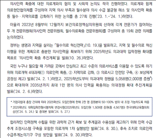 ÇöÀç ÀÇ´ë Á¤¿ø Áõ¿ø°ú °ü·ÃÇÑ »ç¾ÈÀº Áö³ 2¿ù 14ÀÏ ±¹È¸ º»È¸ÀÇ¿¡¼ ¡®ÀÇ´ëÁ¤¿ø Áõ¿ø ÃßÁø°úÁ¤¿¡ ´ëÇÑ °¨»ç¿ä±¸¾È¡¯ÀÌ ÀǰáµÇ¸é¼ °¨»ç¿ø °¨»ç°¡ ÁøÇàµÇ°í ÀÖ´Ù. º¹ÁöºÎ°¡ ¼¿µ¼® ÀÇ¿ø½Ç¿¡ Á¦ÃâÇÑ ÀÚ·á¿¡ µû¸£¸é 2024 º¸°Çº¹Áö¹é¼´Â ±× Á÷ÈÄÀÎ 2¿ù 24ÀÏ ¹ß°£°èȹÀ» ¼¼¿ì°í 5¿ù 23ÀÏ Ãʰí ÀÛ¼º, 8¿ù 6ÀÏ ¼öÁ¤, 8¿ù 18ÀÏ ÃÖÁ¾º» È®Á¤À» °ÅÃÄ 8¿ù 29ÀÏ ¹ß°£µÆ´Ù. °á±¹ °¨»ç ÀýÂ÷°¡ ÇÑâ ÁøÇàµÇ´Â »óȲ¿¡¼ º¹ÁöºÎ´Â ÀÇ´ë Á¤¿ø È®´ë¸¦ ÀÌ¹Ì ¼º°úó·³ ¹é¼¿¡ ±â·ÏÇÑ °ÍÀÌ´Ù.