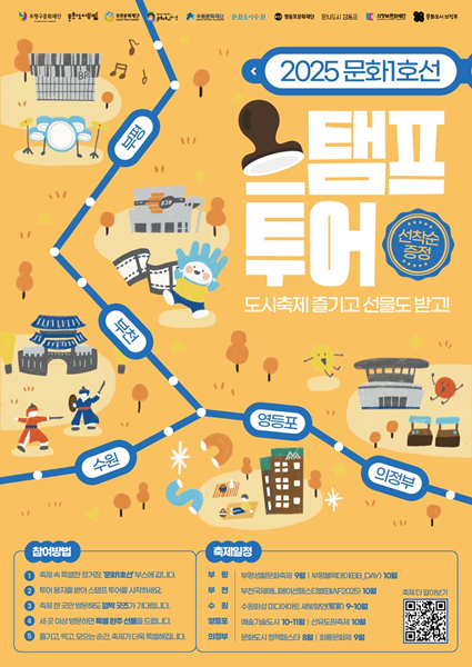 ¡®¹®È­1È£¼± ½ºÅÆÇÁ Åõ¾î¡¯´Â ºÎÆò, ºÎõ, ¿µµîÆ÷, ¼ö¿ø, ÀÇÁ¤ºÎ µî 5°³ ¹®È­µµ½Ã°¡ Çù·ÂÇØ ¼öµµ±Ç 1È£¼±ÀÇ ¿ª»ç¿Í Áö¿ª ¹®È­¸¦ ÀçÇØ¼®Çϰí, ½Ã¹ÎµéÀÌ ÀÏ»ó ¼Ó¿¡¼­ ¹®È­¸¦ Áñ±æ ¼ö ÀÖµµ·Ï ±âȹµÈ °øµ¿»ç¾÷ÀÌ´Ù. ¿ÃÇØ´Â °¢ µµ½ÃÀÇ ´ëÇ¥ ÃàÁ¦¿Í ¿¬°èÇÑ ÇüÅ·Π½ºÅÆÇÁ Åõ¾î°¡ ÁøÇàµÇ¸ç, ºÎõ½Ã¿¡¼­´Â BIAF¿Í ÇÔ²²Çϴ Ưº° ¿¬°èÇÁ·Î±×·¥À¸·Î ¿î¿µµÈ´Ù.