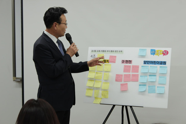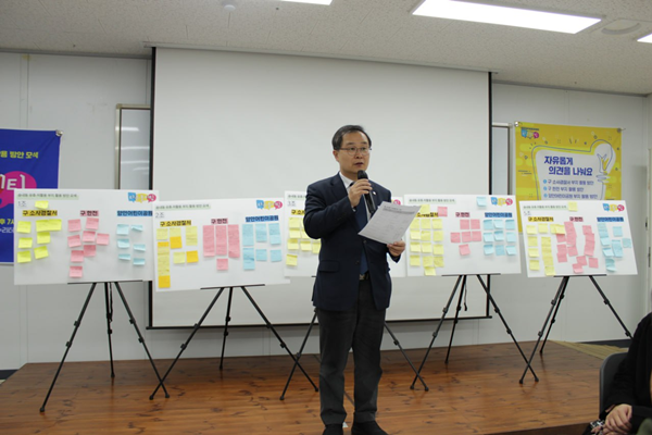 ÇöȲ ¼³¸í°ú °£´ÜÇÑ ¹ßÁ¦¸¦ ½ÃÀÛÀ¸·Î, ÁֹεéÀº ÆÛ½Ç¸®Å×ÀÌÅÍ¿Í ÇÔ²² Á¶º° ±¸¼º¿ø³¢¸® Æ÷½ºÆ®ÀÕÀ» Ȱ¿ëÇØ ¾ÆÀ̵ð¾î¸¦ Á¤¸®Çϰí Àüü Á¶º° ¹ßÇ¥¸¦ ÅëÇØ ÀǰßÀ» °øÀ¯Çß´Ù. µè±â¸¸ ÇÏ´Â ÀÚ¸®°¡ ¾Æ´Ñ, ÁÖ¹ÎÀÌ Á÷Á¢ ¾²°í ºÙÀ̸ç Åä·ÐÇÏ´Â ¡®¼÷ÀÇÇü °ø·Ð °úÁ¤¡¯À̾ú´Ù.