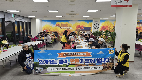 »óµ¿Á¾ÇÕ»çȸº¹Áö°ü[°üÀå Á¤¼º±â]Àº 2025³â 11¿ù 27ÀÏ »óµ¿º¹Áö°ü¿¡¼­ ³ëÀθÂÃãµ¹º½¼­ºñ½º ÀÌ¿ë ¾î¸£½Å°ú »ýȰÁö¿ø»ç, Á÷¿ø, ºÀ»çÀÚµé°ú ÇÔ²² ÁÖº¯ÀÇ ¾î·Á¿î ÀÌ¿ô¿¡°Ô Àü´ÞÇÒ ÇѸ¶À½±èÀåÀÜÄ¡¸¦ ¿­¾ú´Ù.