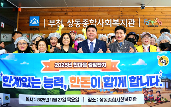ƯÈ÷, À̹ø Çà»ç¿¡¼­´Â Çѵ·ÀÚÁ¶±Ý°ü¸®À§¿øÈ¸ À̱âÈ« À§¿øÀå, ±è¹ÌÀÚ ½ÃÀÇ¿ø°ú ÇÔ²² ºÎõ½Ã¿¡¼­ ÀÚ¿µ¾÷À» ¿î¿µÇϴ û³â »çÀå´ÔµéÀÇ ºÀ»ç´ÜÀÎ µÅ±¸¸®ºÀ»ç´Ü¿¡¼­ Âü¼®ÇØÁÖ¾î dz¼ºÇÑ ÀÜÄ¡°¡ ÁøÇàµÇ¾ú´Ù. º¹Áö°ü Á÷¿ø, ºÀ»çÀÚ, ³ëÀθÂÃãµ¹º½¼­ºñ½º ¾î¸£½Å µîÀÌ µ¿ÂüÇØ ÃÑ 130¸íÀÌ Âü°¡ÇÏ¿´°í, 3,000kgÀÇ ±èÀå±èÄ¡¸¦ ´ã¾ÒÀ¸¸ç À̳¯ ¸¶·ÃµÈ ±èÄ¡´Â µ¶°Å³ëÀÎ, ³ëÀθÂÃãµ¹º½¼­ºñ½º ÀÌ¿ë¾î¸£½Å µî ¼Ò¿Ü°èÃþ 600°¡Á¤¿¡ Àü´ÞÇÒ ¿¹Á¤ÀÌ´Ù.