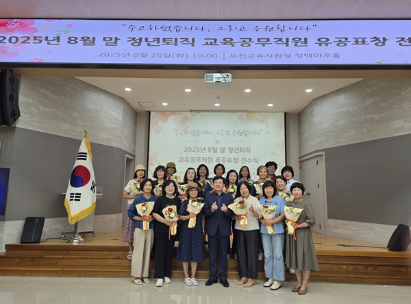 ºÎõ±³À°Áö¿øÃ»(±³À°Àå ±èżº)Àº 8¿ù 26ÀÏ(È­) û»ç 5Ãþ û¹é¸¶·çȦ¿¡¼­ ¡®2025³â 8¿ù Á¤³âÅðÁ÷ ±³À°°ø¹«Á÷¿ø À¯°øÇ¥Ã¢ Àü¼ö½Ä¡¯À» °³ÃÖÇß´Ù. À̳¯ Àü¼ö½Ä¿¡´Â 8¿ù ¸» Á¤³âÅðÁ÷À» ¾ÕµÐ ±³À°°ø¹«Á÷¿ø À¯°øÇ¥Ã¢ ´ë»óÀںеéÀÌ Âü¼®ÇØ ¶æ±íÀº ½Ã°£À» ÇÔ²²Çß´Ù.