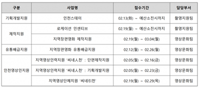 Á¦ÀÛÁö¿øÀº ÀÎõÀ» ¹è°æÀ¸·Î ÇÑ ¿µ»ó¹°ÀÇ Á¦ÀÛºñ ÀϺθ¦ Áö¿øÇÑ´Ù. ·ÎÄÉÀÌ¼Ç Àμ¾Æ¼ºê´Â ÀÎõ¿¡¼ 5ȸ Â÷ ÀÌ»ó ÃÔ¿µÇÑ ¿µ»ó¹°¿¡ ´ëÇØ ÁöÃâ ºñ¿ëÀ» ÃÖ´ë 1¾ï¿ø±îÁö ȯ±ÞÇϸç, ¿¹»ê ¼ÒÁø ½Ã »ç¾÷ÀÌ Á¶±â Á¾·áµÉ ¼ö ÀÖ´Ù. Áö¿ªÀåÆí¿µÈ Á¦ÀÛÁö¿ø »ç¾÷Àº ÃÑ 2¾ï8000¸¸¿ø ±Ô¸ð¿¡¼ 4Æí ¾ÈÆÆÀÇ ÀÛǰÀ» Áö¿øÇÑ´Ù. 2022³â ÇØ´ç »ç¾÷¿¡ ¼±Á¤µÈ ¡®¼¼±â¸»ÀÇ »ç¶û¡¯ÀÌ ÇöÀç ±ØÀå°¡¿¡ »ó¿µ ÁßÀ̸ç, ¶Ç ´Ù¸¥ ¼±Á¤ÀÛ ¡®¸·°É¸®°¡ ¾Ë·ÁÁٰžߡ¯ ¿ª½Ã 2¿ù °³ºÀÀ» ¾ÕµÎ°í ÀÖ´Ù.