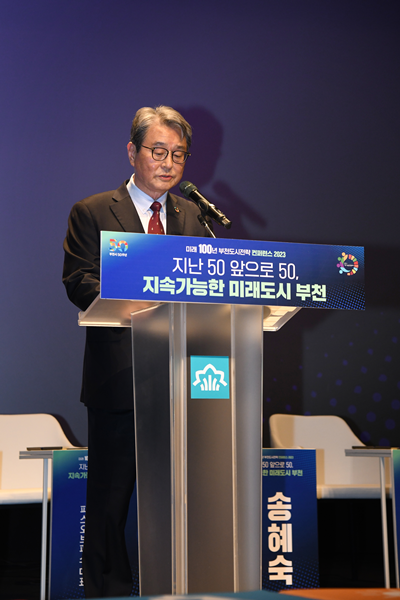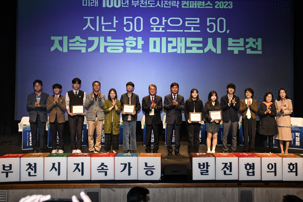 ºÎõ½ÃÁö¼Ó°¡´É¹ßÀüÇùÀÇȸ(ÀÌÇÏ ºÎõÁö¼ÓÇù, ´ëǥȸÀå Çã¿ø¹è, °øµ¿È¸Àå Á¶¿ëÀÍ)´Â ºÎõ½Ã ½Â°Ý 50ÁÖ³âÀ» ¸ÂÀÌÇÏ¿© ¡®¹Ì·¡ 100³â ºÎõµµ½ÃÀü·« ÄÁÆÛ·±½º 2023¡¯À» Áö³ 10¿ù 26ÀÏ ºÎõ ¸¸È¹Ú¹°°ü 1Ãþ »ó¿µ°ü¿¡¼ °³ÃÖÇß´Ù.