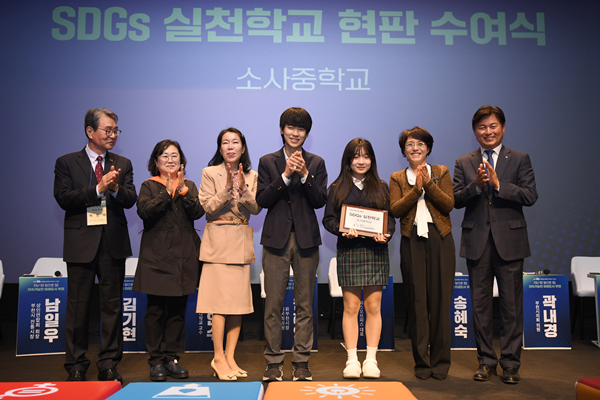 ÇÑÆí, À̳¯ ºÎõÁö¼ÓÇùÀº ¼Û³»ÃʵîÇб³, ¼Ò»çÁßÇб³, »óÀϰíµîÇб³¸¦ ¡®SDGs ½ÇõÇб³¡¯·Î ÁöÁ¤, ÇöÆÇÀ» Àü´ÞÇß´Ù. ¶Ç, ¼¿ï½ÅÇдëÇб³ ºÀ»çµ¿¾Æ¸® FBI¸¦ ½Çõµ¿¾Æ¸®µµ ¼±Á¤Çß´Ù.