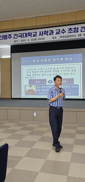 ½Åº´ÁÖ ±³¼ö´Â ¡°¿ª»ç´Â ÇöÀ縦 ºñÃß´Â °Å¿ïÀ̶ó°í Çϴµ¥, ÀÌ´Â ¿ª»ç°¡ ´Ü¼øÇÑ °ú°ÅÀÇ ¿¾À̾߱â·Î¸¸ ±×Ä¡Áö ¾Ê°í ÇöÀç ½Ã´ë¿¡µµ ¿µÇâÀ» ÁÖ°í Àֱ⠶§¹®¡±À̶ó¸ç, ¡°½Ã±â º°·Î Á¶¼±ÀÇ ¿ÕµéÀÌ º¸¿©ÁÖ¾ú´ø ¸®´õ½ÊÀÇ ¸ð½À¿¡¼ ¹Ý¸é±³»ç·Î ¹è¿ï Á¡¿¡ ´ëÇØ ÇÔ²² »ý°¢Çغ¸¾ÒÀ¸¸é ÇÑ´Ù¡±°í ¸»Çß´Ù.