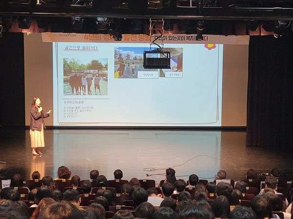 À̳¯ ½ÉÆ÷Áö¾öÀº »çȸº¹Áö°üÀÌ ±â´Éº°(»ç·Ê°ü¸®, ¼ºñ½º, ÁÖ¹ÎÁ¶Á÷È)·Î ±¸ºÐÇÏ¿© ¿î¿µµÇ´Â üÁ¦¸¦ ÅëÇÕ¹æ½ÄÀ¸·Î º¯È½ÃÄÑ 3´ë ±â´ÉÀ» ¸ðµç »çȸº¹Áö»ç°¡ ¿ÂÀüÈ÷ ½ÇõÇÏ´Â ¹æ½ÄÀ¸·Î ¸¶À»ÁöÇâ »ç¾÷À» ½ÇõÇÑ 4³âÀÇ ¼º°ú¸¦ ¹ßÇ¥ÇÑ ÀÚ¸®¿´´Ù. ½Ç¹«¸¦ ´ã´çÇϰí ÀÖ´Â »çȸº¹Áö»çµéÀÌ Á÷Á¢ ¿µ¿ªº° ½Çõ »ç·Ê¸¦ Áß½ÉÀ¸·Î ¹ßÇ¥ÇÏ¿´À¸¸ç, ÁÖ¹ÎÀ» À§ÇØ ¸¶À»·Î ã¾Æ°¡°í(À̼±¹Ì ÆÀÀå), ¸¶À»¿¡¼ °ø°£À» ¸¸µé°í(È«À¯Èñ ÆÀÀå), Á» ´õ ÁÖüÀûÀΠȰµ¿°¡·Î ÁÖ¹ÎÀ» ¼¼¿ì°í(±è¼±¿µ ÆÀÀå), Àͼ÷ÇÏ°Ô ¸¸³ª´ø Áֹΰú ´õºÒ¾î û³â(À¯µ¿Çö »çȸº¹Áö»ç), Áß³â(°Á¤½Ä °úÀå) µî »õ·Ó°Ô ¸¸³ Áֹεé°úÀÇ Á¶Á÷Ȱµ¿À» °øÀ¯ÇÏ°í ³ª´©´Â ½Ã°£À̾ú´Ù.