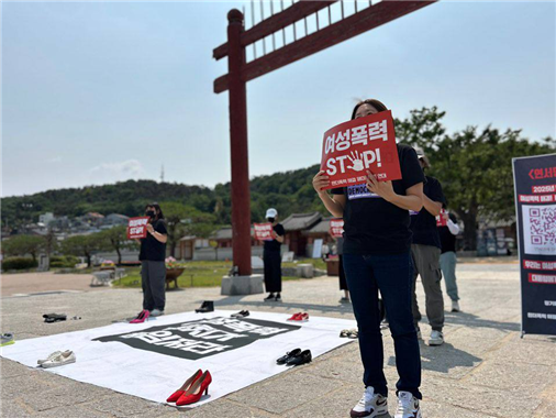 ¡°¼ºÆø·Â ¸·¸» ÀÌÁؼ® »çÅð! ¿©¼ºÆø·Â Á¤Ä¡°¡ ÇØ°áÇ϶ó!¡± ¼ö¿ø È­¼ºÇà±Ã¼­ ´ÙÀÌ-ÀÎ(Die-in) ÆÛÆ÷¸Õ½º