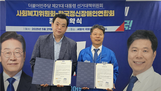 ´õºÒ¾î¹ÎÁÖ´ç ¼±°Å´ëÃ¥À§¿øÈ¸ »çȸº¹ÁöÀ§¿øÈ¸(À§¿øÀå ¼­¿µ¼®, °æ±âºÎõ½Ã(°©) ±¹È¸ÀÇ¿ø, ÀÌÇÏ »çȸº¹ÁöÀ§¿øÈ¸)´Â 29ÀÏ ¸ñ¿äÀÏ ¼­¿µ¼® ±¹È¸ÀÇ¿ø Áö¿ª»ç¹«¼Ò¿¡¼­ Çѱ¹Á¤½ÅÀå¾ÖÀο¬ÇÕȸ(»óÀÓ´ëÇ¥ ½Å¼®Ã¶)¿Í Á¤Ã¥Çù¾àÀ» ü°áÇß´Ù.