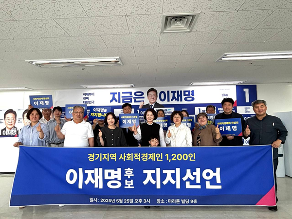 ÇÑÆí, °°Àº³¯ °æ±âÁö¿ª »çȸÀû °æÁ¦Àεµ °æ±âµµ´ç ¼±´ëÀ§¸¦ ã¾Æ ÀÌÀç¸í Èĺ¸ ÁöÁö¸¦ ¼±¾ðÇϰí 1,200ÀÎÀÌ ÇÔ²²ÇÑ ÁöÁö¼±¾ð¹®À» Àü´ÞÇß´Ù.