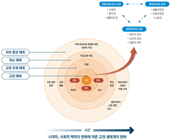 ÀÌ·¯ÇÑ ³»¿ëÀ» Åä´ë·Î »ýÅÂÇÐÀû °üÁ¡¿¡¼ ±ÇÇÑ, ±Ç¸®, ±ÇÀ§¸¦ ¸ðµÎ °í·ÁÇÑ Æø³Ð°í Á¾ÇÕÀûÀÎ °³¼± °úÁ¦·Î¼ ¡®1) »çȸÀû ÇÕÀǸ¦ ÅëÇÑ ±³±Ç °³³äÀÇ Á¤¸³, 2) »ýȰÁöµµ±Ç ¹× Àü¹®Àû ±ÇÀ§ °È, 3) Çõ½ÅÀû Çб³ ¹®È Á¶¼º°ú °ü¸®ÀÚ ¸®´õ½Ê ÇÔ¾ç, 4) ÀüÅëÀû ±³À°¿¡¼ ¹Ì·¡ ±³À°À¸·ÎÀÇ ¿ø¸¸ÇÑ ÀÌÇàÀ» À§ÇÑ Ãæ½ÇÇÑ »çÀü Áغñ¡¯¸¦ Á¦½ÃÇß´Ù.