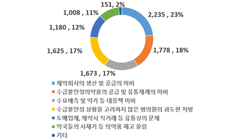 ¼ö±ÞºÒ¾ÈÁ¤ÀÌ »ý±â´Â ¿øÀο¡ ´ëÇØ¼­´Â ÀÀ´äÀÚÀÇ 23%°¡ Á¦¾àȸ»çÀÇ »ý»ê ¹× °ø±Þ ¹Ìºñ¸¦ ¿ì¼±ÀûÀÎ ¿äÀÎÀ¸·Î ÁöÀûÇÏ¿´°í, ¼ö±ÞºÒ¾ÈÁ¤ÀǾàǰÀÇ °ø±Þ ¹× À¯Åëü°èÀÇ ¹Ìºñ°¡ 18%, ¼ö¿ä¿¹Ãø ¹× ¾à°¡ µî ´ëÀÀÃ¥ ¹Ìºñ°¡ 17%, ¼ö±ÞºÒ¾ÈÁ¤ »óȲÀ» °í·ÁÇÏÁö ¾ÊÀº º´ÀÇ¿øÀÇ °úµµÇÑ Ã³¹æµµ 17%¿¡ ´ÞÇß´Ù. ¶ÇÇÑ ±× ¿Ü À¯Åë»óÀÇ ¹®Á¦°¡ ¿øÀÎÀ̶ó´Â ÁöÀûÀº 12%, ¾à±¹µéÀÇ °úµµÇÑ »çÀç±â°¡ ¹®Á¦¶ó´Â ÀÀ´äÀº 10%¿´´Ù.