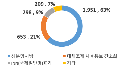 ¼ö±ÞºÒ¾ÈÁ¤ÀǾàǰ¿¡ ´ëÇÑ ´ëÃ¥À» ¹¯´Â ¼³¹®¿¡´Â ¼ººÐ¸í ó¹æ 63%, ´ëüÁ¶Á¦ »çÈÄÅ뺸 °£¼ÒÈ­ ¹æ¾È 21%, INN(±¹Á¦ÀϹݸí) Ç¥±â 10% ¼øÀ̾ú´Ù. ±× ¿Ü ±âŸ ´äº¯À¸·Î´Â ±ÕµîºÐ¹è, Á¦¾àȸ»ç Àǰ߼ö·Å, Àå±âǰÀý¾à ±Þ¿©ÁßÁö µîÀÇ ÀǰßÀÌ Á¦½ÃµÇ¾ú´Ù.