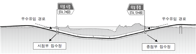 À§ °ø»çÀÇ ÇѰ­ÅͳÎÀº ÇѰ­ ÇÏÀú¸¦ Åë°úÇÏ´Â ÁöÇϵµ·Î ±¸°£(2.98km)À¸·Î °­¿ì ½Ã ħ¼ö¹æÁö¸¦ À§ÇØ ÅͳΠ½ÃÁ¾Á¡ºÎ¿¡ Áý¼öÁ¤À» ¼³Ä¡ÇÏ°í ¹è¼öÆßÇÁ¸¦ ÀÌ¿ëÇÏ¿© °­Á¦¹è¼ö¸¦ Çϵµ·Ï ¼³°èµÇ¾î ÀÖ´Ù. [¾Æ·¡]