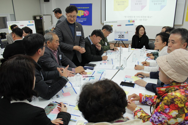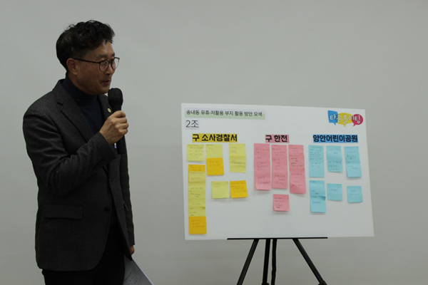 ÇöȲ ¼³¸í°ú °£´ÜÇÑ ¹ßÁ¦¸¦ ½ÃÀÛÀ¸·Î, ÁֹεéÀº ÆÛ½Ç¸®Å×ÀÌÅÍ¿Í ÇÔ²² Á¶º° ±¸¼º¿ø³¢¸® Æ÷½ºÆ®ÀÕÀ» Ȱ¿ëÇØ ¾ÆÀ̵ð¾î¸¦ Á¤¸®Çϰí Àüü Á¶º° ¹ßÇ¥¸¦ ÅëÇØ ÀǰßÀ» °øÀ¯Çß´Ù. µè±â¸¸ ÇÏ´Â ÀÚ¸®°¡ ¾Æ´Ñ, ÁÖ¹ÎÀÌ Á÷Á¢ ¾²°í ºÙÀ̸ç Åä·ÐÇÏ´Â ¡®¼÷ÀÇÇü °ø·Ð °úÁ¤¡¯À̾ú´Ù.