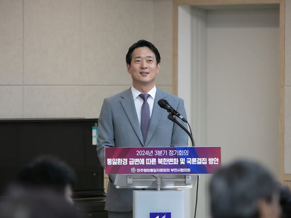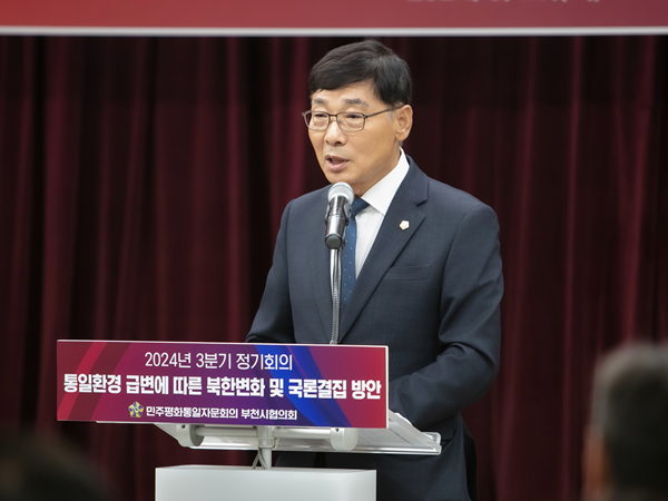 ¹ÎÁÖÆòÈ­ÅëÀÏÀÚ¹®È¸ÀÇ ºÎõ½ÃÇùÀÇȸ(ÇùÀÇȸÀå È«»ç¿ì, ÀÌÇÏ¡®ºÎõ½ÃÇùÀÇȸ¡¯)´Â 9¿ù 26ÀÏ(¸ñ) ¿ÀÀü 11½Ã ºÎõ½Ãû ¼ÒÅ븶´ç¿¡¼­ ±èº´Àü ºÎõ½ÃÀÇȸ ÀÇÀå µî ÀÚ¹®À§¿ø 85¸íÀÌ Âü¼®ÇÑ °¡¿îµ¥¡®ÅëÀÏȯ°æ ±Þº¯¿¡ µû¸¥ ºÏÇѺ¯È­ ¹× ±¹·Ð°áÁý ¹æ¾È¡¯À» ÁÖÁ¦·Î¡®2024³â 3ºÐ±â Á¤±âȸÀÇ¡¯(ÀÌÇÏ¡®Á¤±âȸÀÇ¡¯)¸¦ °³ÃÖÇß´Ù.