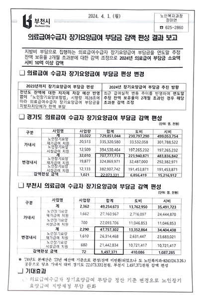 ºÎõ½Ã¿¡ µû¸£¸é ¼­¿µ¼® ÀÇ¿øÀÌ Áö³­ÇØ º¸°Çº¹ÁöºÎ ¹× ±¹¹Î°Ç°­º¸Çè°ø´Ü ±¹Á¤°¨»ç¿¡¼­ ÁöÀûÇÑ ÀÇ·á±Þ¿©¼ö±ÞÀÚ Àå±â¿ä¾ç±Þ¿© ºÎ´ã±Ý Á¤»ê Á¦µµ °³¼±ÀÇ °á°ú, 2024³â ºÎõ½Ã°¡ ºÎ´ãÇØ¾ß ÇÒ ÀÇ·á±Þ¿©¼ö±ÞÀÚÀÇ Àå±â¿ä¾ç±Þ¿© ºÎ´ã±ÝÀÌ ´çÃʺ¸´Ù ¾à 10¾ï 8õ¸¸ ¿ø ÁÙ¾îµç °ÍÀ¸·Î ³ªÅ¸³µ´Ù.