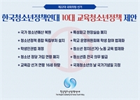 Çѱ¹Ã»¼Ò³âÁ¤Ã¥¿¬´ë ±³À°¡¤Ã»¼Ò³â 10´ë ÀÇÁ¦ ¹ßÇ¥ ±¹°¡ û¼Ò³â¿¹»ê º¹¿ø, û¼Ò³â Àü´ãºÎó ¼³Ä¡, ÇлýÀαǹý Á¦Á¤ µî 10´ë ÀÇÁ¦ ÃѼ± °ø¾àÈ­ ¿ä±¸ Çѱ¹Ã»¼Ò³âÁ¤...