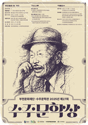 ¼öÁÖ¹®ÇаüÀº 6¿ù 16ÀÏ(¿ù)ºÎÅÍ 7¿ù 18ÀÏ(±Ý)±îÁö Á¦27ȸ ¼öÁÖ¹®Çлó ÀÛǰÀ» °ø¸ðÇÑ´Ù. ¼öÁÖ¹®ÇлóÀº ºÎõÀ» ´ëÇ¥ÇÏ´Â ¹®ÀÎ ¼öÁÖ º¯¿µ·ÎÀÇ ¹®ÇÐÁ¤½ÅÀ» À̾°íÀÚ ¸Å³â °³ÃֵǴ Àü±¹ ½Ã(ãÌ) ¹®ÇлóÀÌ´Ù. ¿ÃÇØ´Â ¹Ìµî´Ü, ½ÅÀÎ, ±â¼º ¹®ÀÎ µî °æ·Â¿¡ °ü°è¾øÀÌ ´©±¸³ª Âü¿©ÇÒ ¼ö ÀÖÀ¸¸ç, ¹ßÇ¥µÇÁö ¾ÊÀº âÀ۽à 7~10ÆíÀ» Á¦ÃâÇÏ¸é µÈ´Ù. ´Ü, ¿ª´ë ¼öÁÖ¹®Çлó ¼ö»óÀÚ´Â ÀÀ¸ðÇÒ ¼ö ¾ø´Ù.