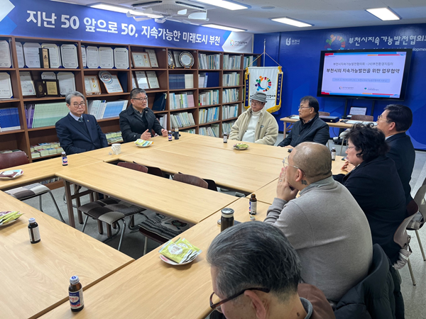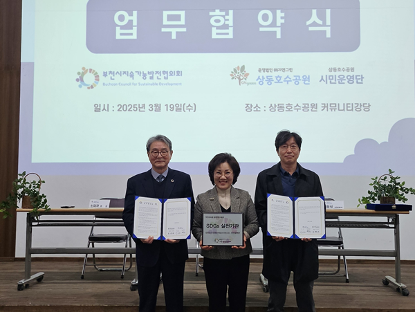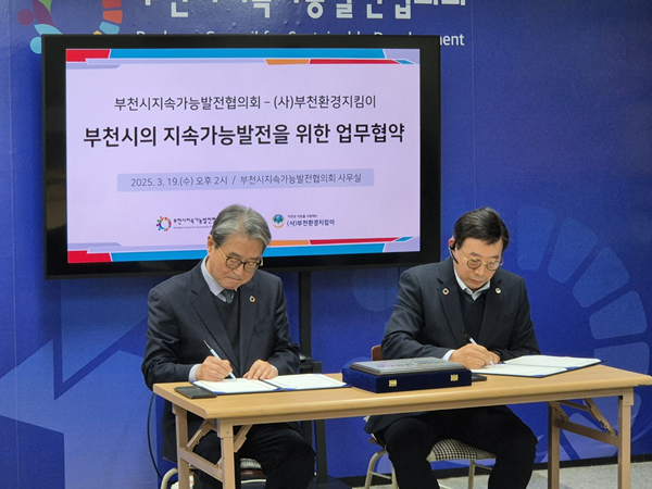 ºÎõ½ÃÁö¼Ó°¡´É¹ßÀüÇùÀÇȸ(´ëǥȸÀå Çã¿ø¹è, ÀÌÇÏ ºÎõÁö¼ÓÇù)´Â Áö³ 3¿ù 19ÀÏ »óµ¿È£¼ö°ø¿ø ¿î¿µ¹ýÀÎ ¢ßÁö¿£±×¸°(¿øÀå ½Å¹ÌÀÚ), ½Ã¹Î¿î¿µ´Ü(´ÜÀå ¹é¿î¼º)°ú Àΰ£°ú ÀÚ¿¬ÀÌ °øÁ¸ÇÏ´Â Áö¼Ó°¡´ÉÇÑ »ýŵµ½Ã ºÎõÀ» ¸¸µé±â À§ÇÑ ¾÷¹«Çù¾àÀ» ü°áÇß´Ù.