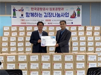 Çѱ¹°øÇ×°ø»ç ±èÆ÷°øÇ×, °í°­Á¾ÇÕ»çȸº¹Áö°ü°ú ÇÔ²² ±èÀå±èÄ¡ ³ª´®»ç¾÷À» ½Ç½ÃÇÏ´Ù. °í°­Á¾ÇÕ»çȸº¹Áö°ü¿¡¼­ ±èÀå±èÄ¡ Àü´Þ½ÄÀÌ ¼ºÈ²¸®¿¡ °³ÃֵƴÙ. À̹ø Àü´Þ½ÄÀº Çѱ¹...
