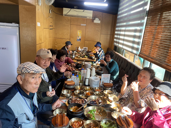 Áö¿ª ³» Ãë¾à°èÃþ µ¶°Å ¾î¸£½Å 30¸í°ú ºÎõ½Ã ³» À¯¸í ½Ä´ç¿¡¼ ÇÔ²² ¸ð¿© ½Ä»çÇÏ¿´À¸¸ç, Àα٠ºÎõ ÀÚ¿¬»ýŰø¿ø¿¡¼ ÀÚ¿¬»ýÅ ¹Ú¹°°ü ¹× ¼ö¸ñ¿ø °ü¶÷ Ȱµ¿À» ÁøÇàÇÏ¿©, Ȱµ¿¿¡ Âü¿©ÇÑ ¾î¸£½ÅµéÀº ¡±¸ÀÀÖ´Â ½Ä»ç ÇÑ ³¢ Á¦´ë·Î ´ëÁ¢¹Þ¾Æ ±âºÐÀÌ ³Ê¹« ÁÁ¾Ò¾î¿ä, Æò¼Ò¿£ ´Ù¸®µµ ¾ÆÇÁ°í ¿òÁ÷À̱⵵ Èûµé¾î¼ ÀÌ·± µ¥ ¿Ã ¾öµÎ°¡ ¾È ³ª´Âµ¥ µ¥·Á¿Í Áּż °¨»çÇß¾î¿ä¡°¶ó¸ç Ȱµ¿¿¡ ´ëÇÑ ¸¸Á·°¨À» Ç¥ÇöÇß´Ù.