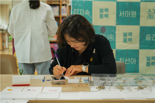 ¡ã ºÎõ¹®È¸¶À»_Ã¥ÄÛÅå(¿Á±æµ¿) : ¿Á±æµ¿ÀÇ ÀÛÀº µµ¼°ü¿¡¼ Ã¥À» ÅëÇØ ¸¶À½À» µ¹º¸°í ¾òÀº Ä¡À¯ÀÇ ÈûÀ» ÀÛÀº ÆíÁöÀÇ µû¶æÇÑ °¨µ¿À» ÅëÇØ ¸¶À» °÷°÷¿¡ ³ª´©´Â ÇÁ·ÎÁ§Æ® ¡®Ã¥ÄÛÅå ¿Â±â·¹ÅÍ¡¯ ÇöÀå »çÁø