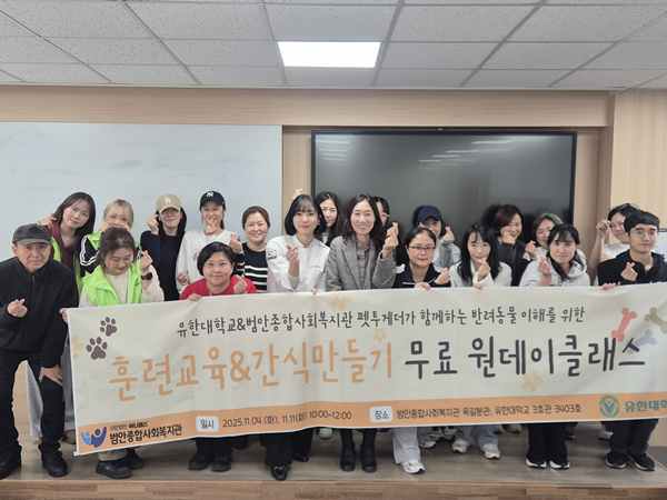 ¹ü¾ÈÁ¾ÇÕ»çȸº¹Áö°ü(°üÀå ¹ÚÇö)Àº Áö³­ 11¿ù 4ÀÏ(È­)°ú 11¿ù 11ÀÏ(È­), ¿Á±æºÐ°ü Çູ¸¶À»¹æ°ú À¯ÇÑ´ëÇб³ 3È£°ü 3402È£¿¡¼­ ¹Ý·ÁÀÎ ¹× Áö¿ªÁֹΠ40¸íÀ» ´ë»óÀ¸·Î ¡®¹Ý·Áµ¿¹° ÀÌÇØ¸¦ À§ÇÑ ÈÆ·Ã ±³À°&°£½Ä ¸¸µé±â ¹«·á ¿øµ¥ÀÌ Å¬·¡½º¡¯¸¦ ÁøÇàÇß´Ù.