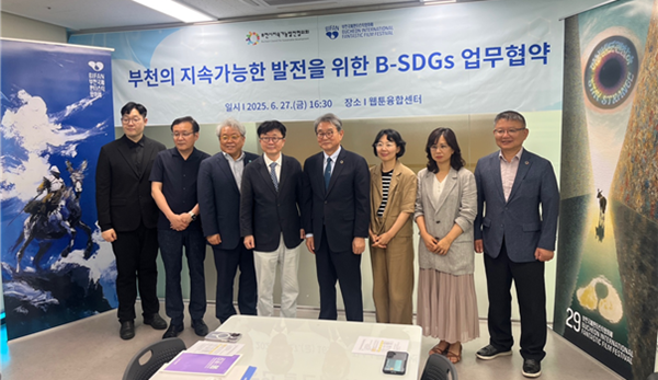 ºÎõ½ÃÁö¼Ó°¡´É¹ßÀüÇùÀÇȸ(´ëǥȸÀå Çã¿ø¹è)´Â Áö³­ 6¿ù 27Àϰú 28ÀÏ ¾çÀÏ, ºÎõ±¹Á¦ÆÇŸ½ºÆ½¿µÈ­Á¦(ÁýÇàÀ§¿øÀå ½Åö, ÀÌÇÏ BIFAN)¿Í ºÎõ½Ã¼Ò»ó°øÀο¬ÇÕȸ(ȸÀå ÀÌÁ¤È£, ÀÌÇÏ ¿¬ÇÕȸ)¿Í °¢°¢ ºÎõ½Ã Áö¼Ó°¡´É¹ßÀü¸ñÇ¥(B-SDGs) ÀÌÇàÀ» À§ÇÑ ¾÷¹«Çù¾àÀ» ü°áÇß´Ù.