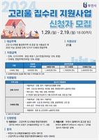 ºÎõ½Ã, 2024³â °í¸®¿ï Áý¼ö¸® Áö¿ø»ç¾÷ ½ÅûÀÚ ¸ðÁý ³ëÈÄÁÖÅà ´ë»ó ¿À´Â 2¿ù 19ÀϱîÁö Á¢¼ö¡¦Àںδã 10% Æ÷ÇÔ ÃÖ´ë 1,241¸¸¿ø Áö¿ø